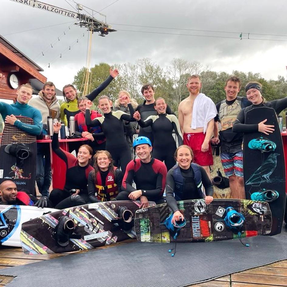 Dieses Komplettpaket für exklusive Gruppenbuchungen beinhaltet die Betreuung und Einweisung durch einen erfahrenen Coach sowie sämtliche zur Verfügung stehenden Verleihmaterialien wie kurze oder lange Neoprenanzüge (entsprechend der Wetterlage), alle Arten von Leihski (Paarski, Monoski, Kneeboard oder Trickski), Wakeboards für jedes Fahrlevel, egal ob Einsteiger oder Profi, sowie Schwimmwesten und Helme.